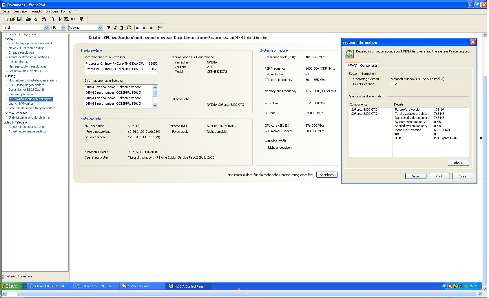 Hallo mal ne Frage, habe mir die neuen Forceware 175.19 treiber für meine xfx gforce 8800gtx gesaugt.