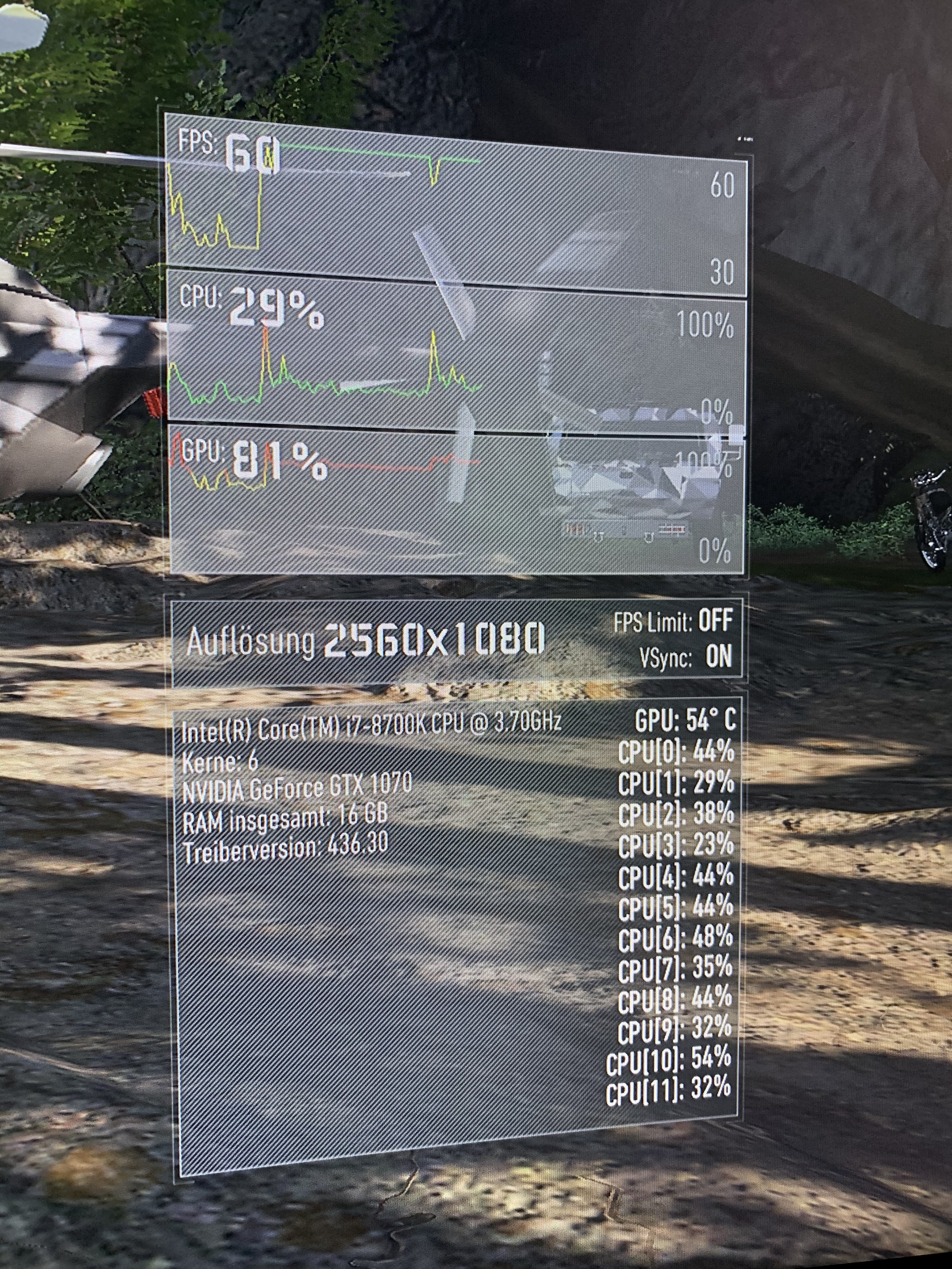 Hab es auch mal angespielt und es frisst eine Menge an Leistung siehe Fotos