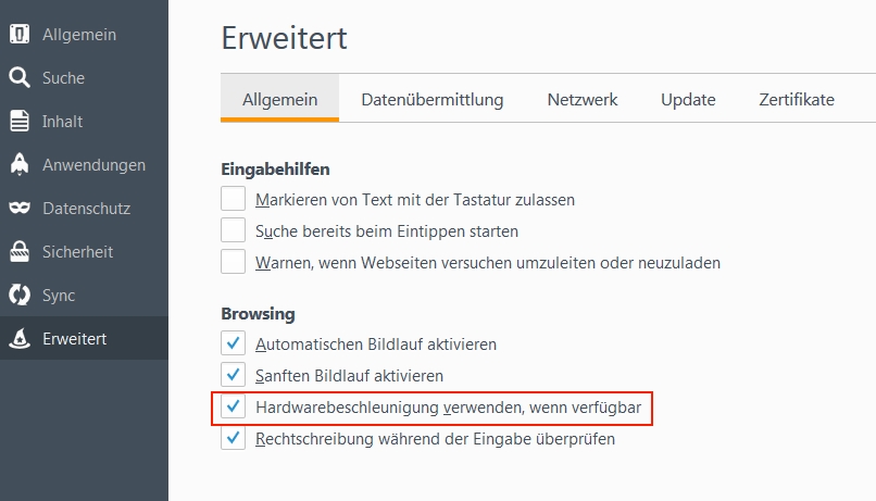 2. Kannst mal versuchen die Hardwarebeschleunigung im Browser aus zu stellen.