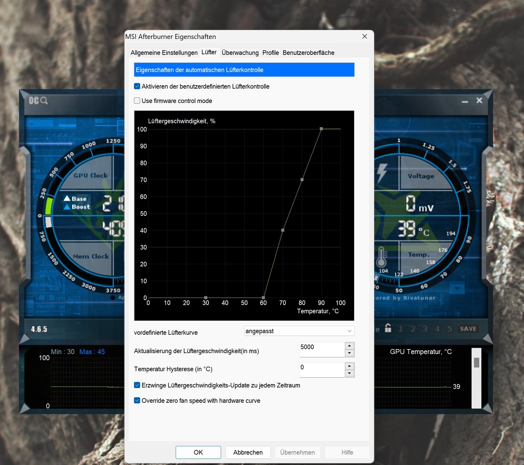 Aber Afterburner muss ja offen sein für die Lüftersteuerung. Dieses nicht. Und beliebige Kurve einstellbar.