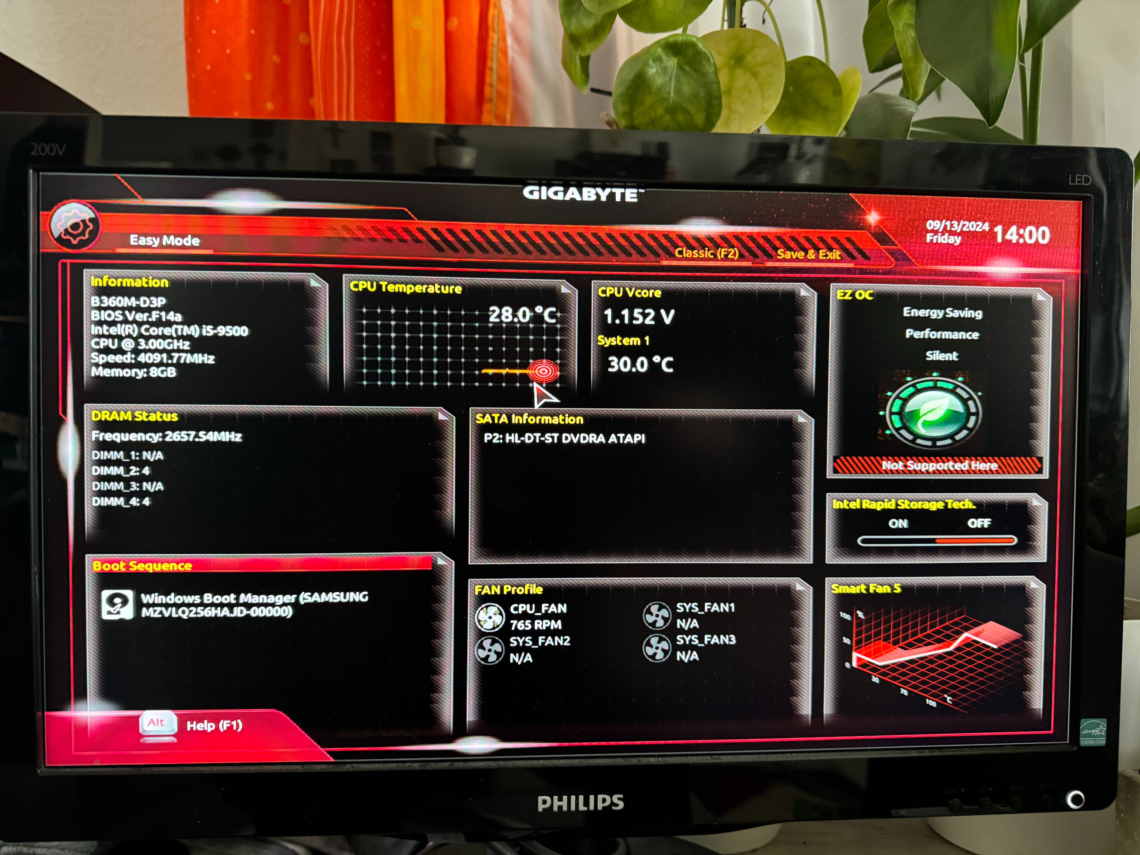 - Mainboard: GIGA B360M-D3P Bios F14a
