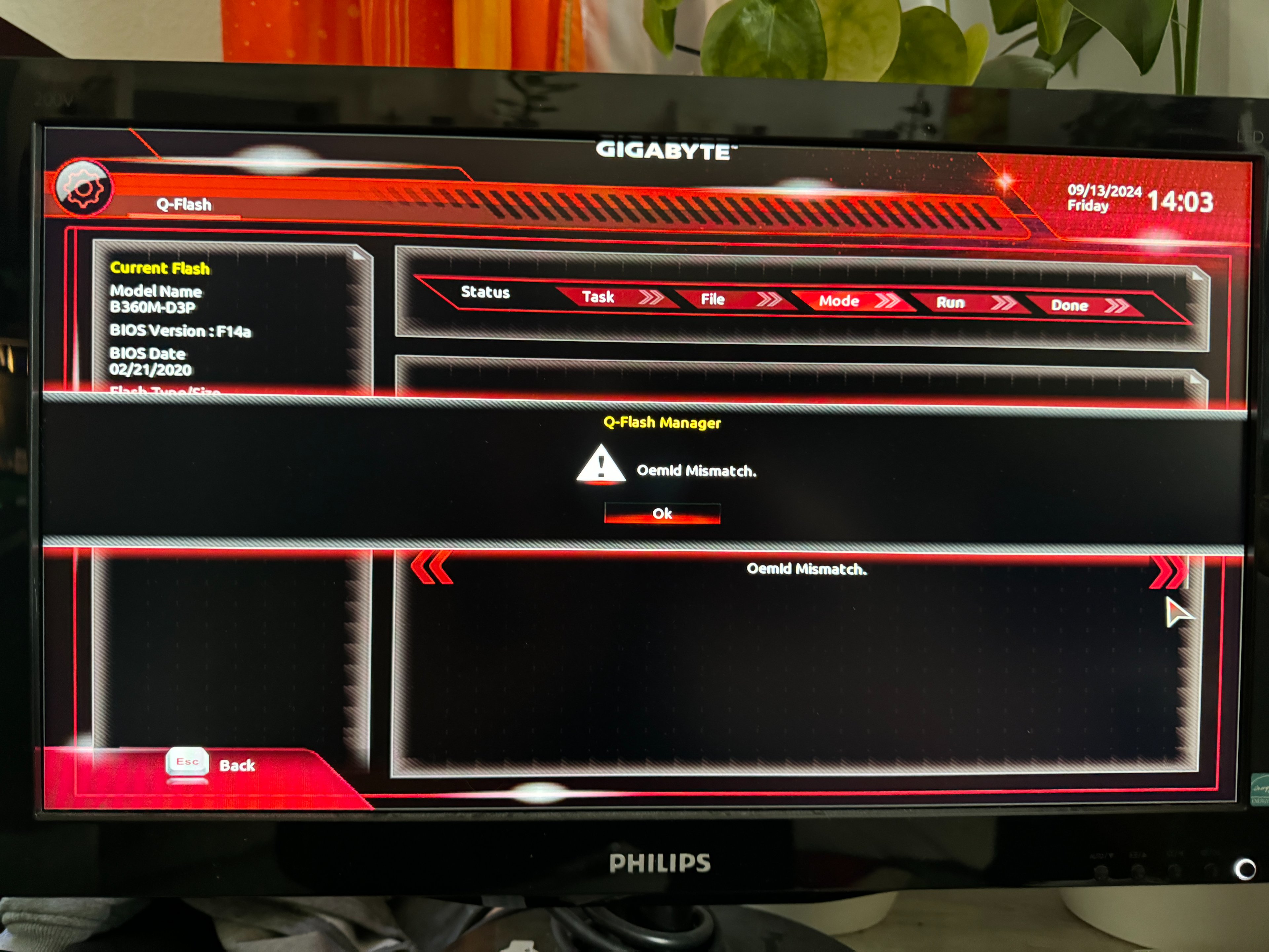 Wenn ich im Bios das neuste Bios F16 installieren will kommt der Fehler "Oemid Mismatch"