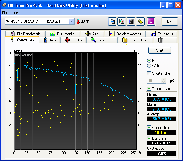 Die Festplatte schafft allerdings 70MB/s beim Festplattenkopiertest. Also z.B. über E-SATA!!!
