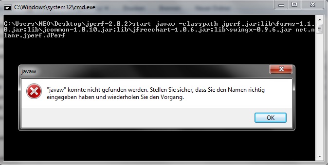 wenn ich in dem Ordner Jperf in den bin ordner gehe und die iperf.exe starten will öffnet sich für einen bruchteil eienr sek das cmd undschließt sich wieder. dann passiert nix mehr.