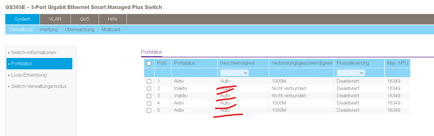 habe mir einen 5-Port Gigabit Ethernet Unmanaged Switch NETGEAR GS305 geholt.