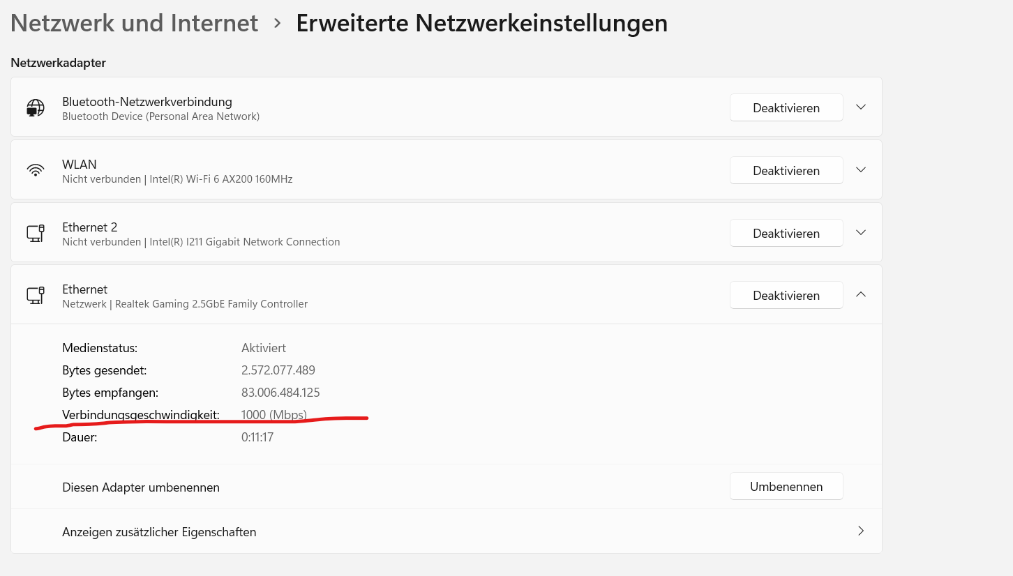 habe den mit meinem PC und dem Router verbunden. bekomme dann nur 100mbps, wenn ich allerdings vom Router direkt rangehe, habe ich deutlich mehr.