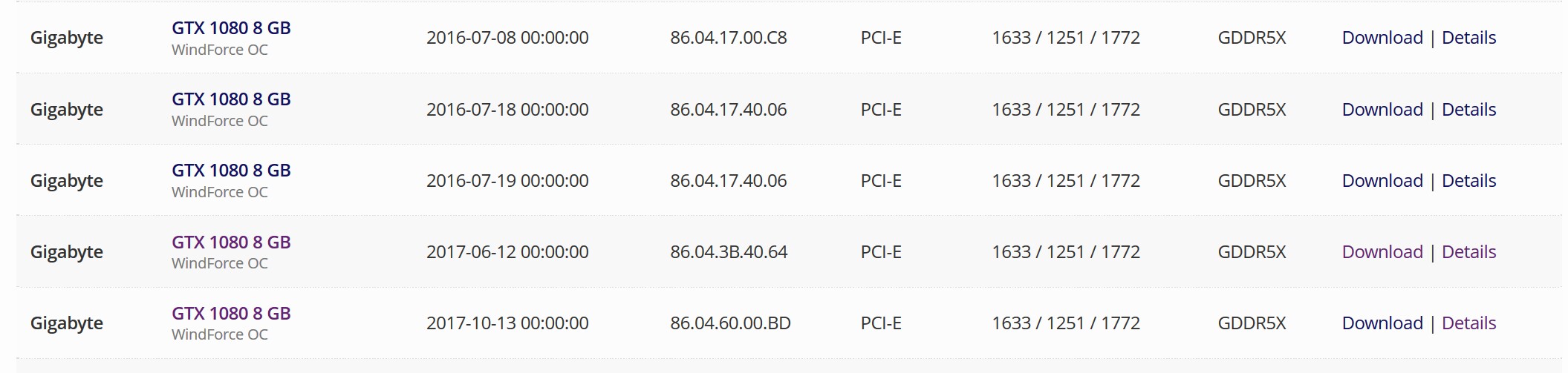Gigabyte 1080 Windforce - neueres Bios flashen