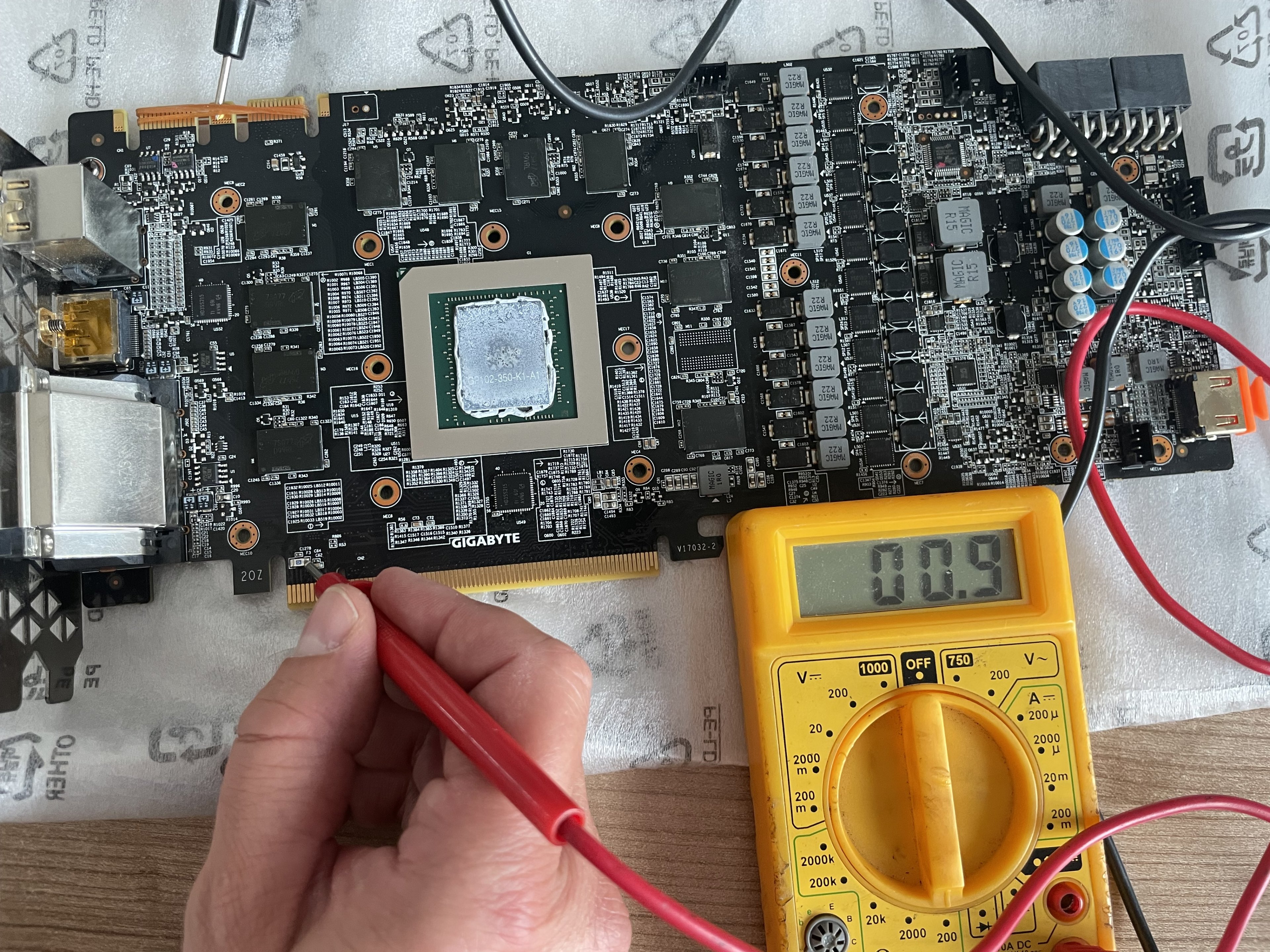 Interne Graka vom Prozessor läuft und ich bekomme ein Bild. Die 1080 ti zuckt nicht ein Stück, Lüfter drehen nicht, auch in einem zweiten Rechter dasselbe Bild, liegt also definitiv an der Graka.