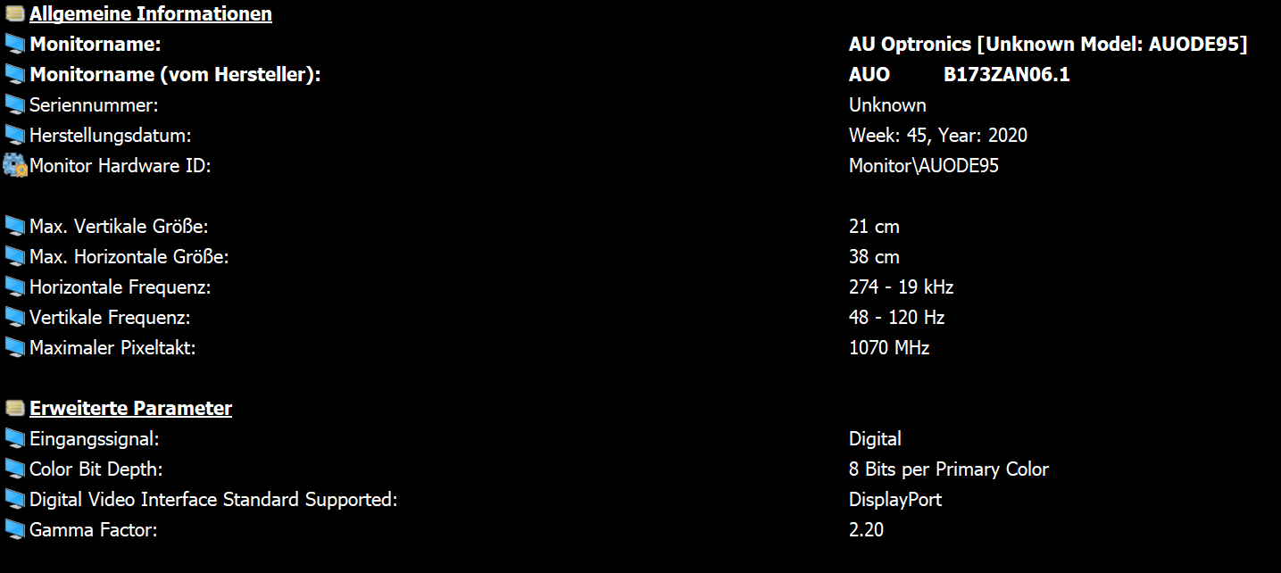 Da steht denn auch nochmal, in welchem Hz Bereich das Display arbeitet. Und wenn du dem immernoch keinen glauben schenkst, gibst du den Monitornamen bei