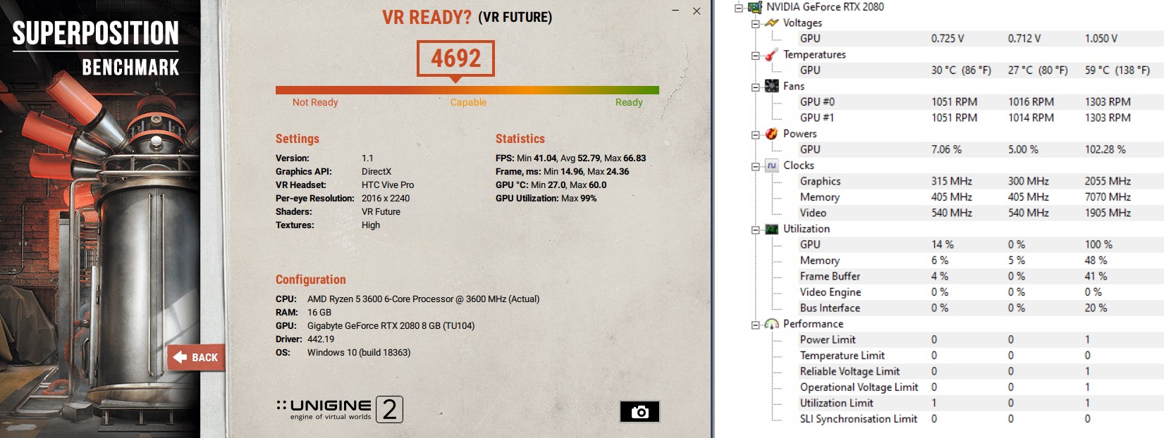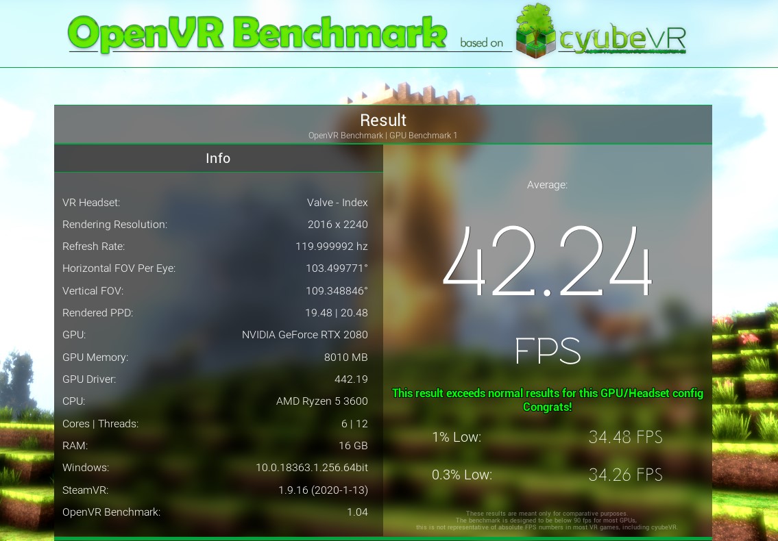 (Settings beachten! Standard ist Oculus-Resolution, hier Vive Pro. Das ändert die Ergebnisse enorm wegen der Auflösung)
