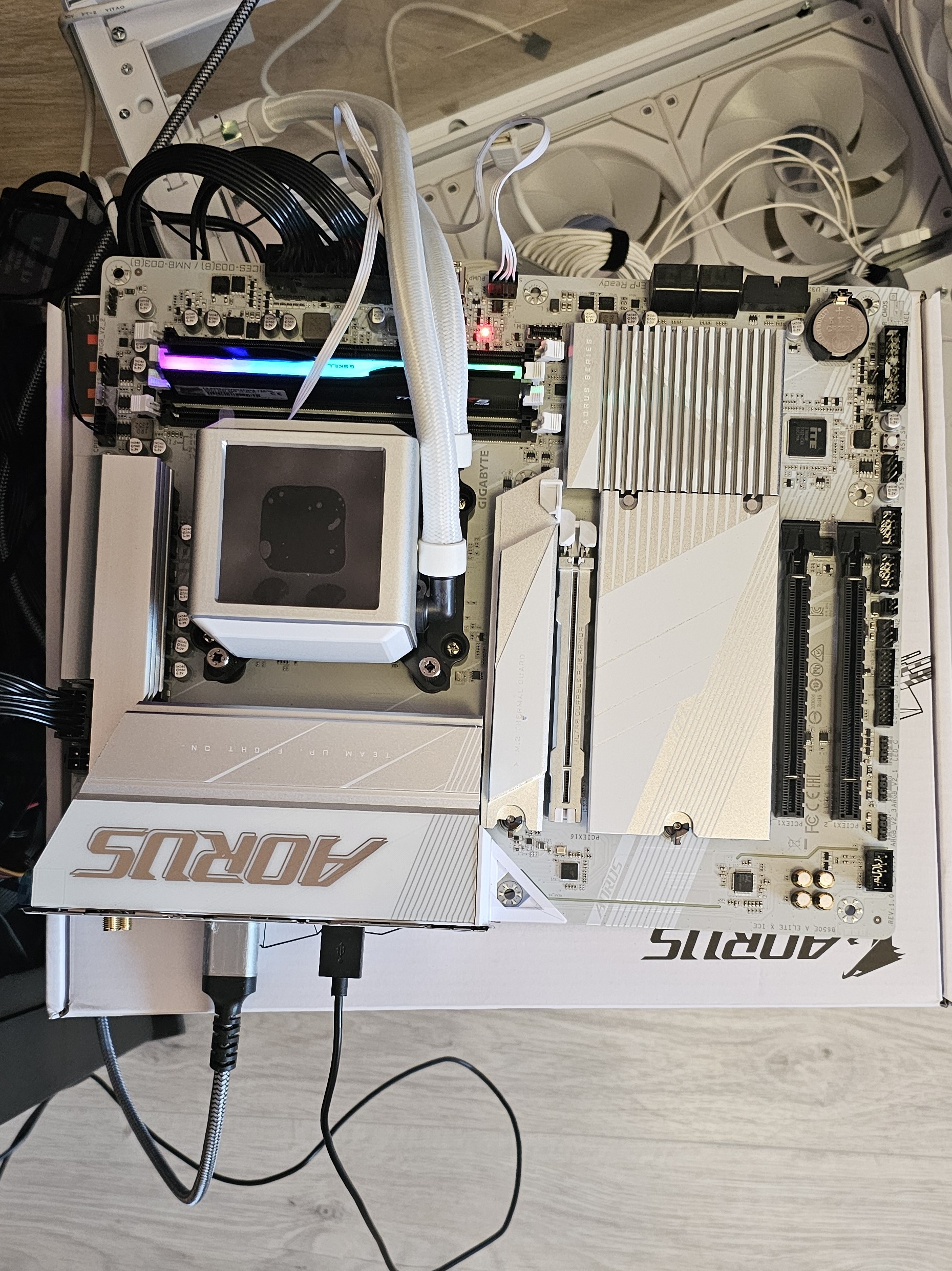 - Mainboard: Gigabyte B650E Aorus Elite X AX Ice