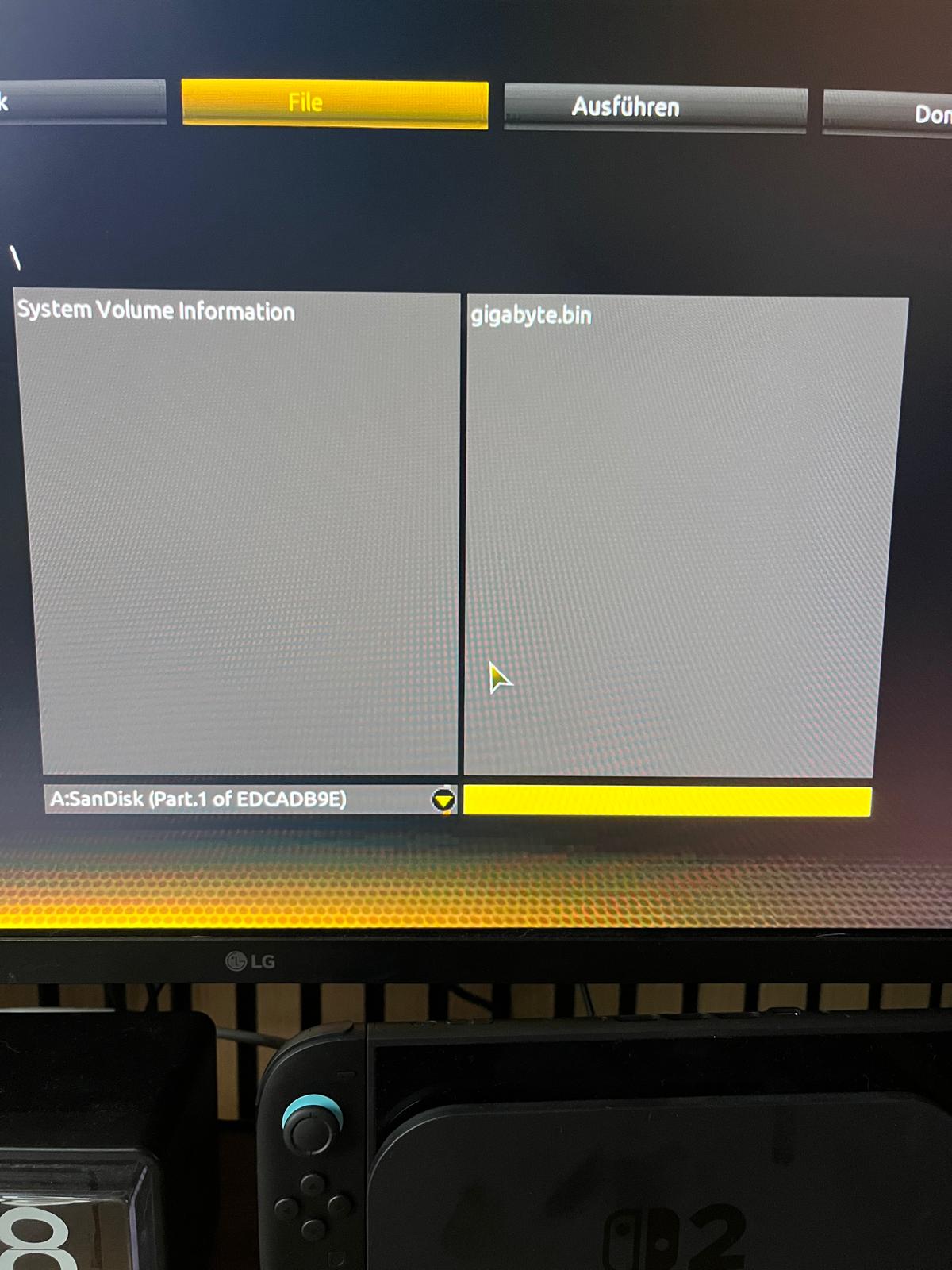ich habe den ordner jetzt entpackt und in gigabyte.bin umgenannt, dass hat nicht funktioniert. dann habe ich datei nicht entpackt sondern nur umbenannt das ging auch nicht. der stick steck im bios slot.