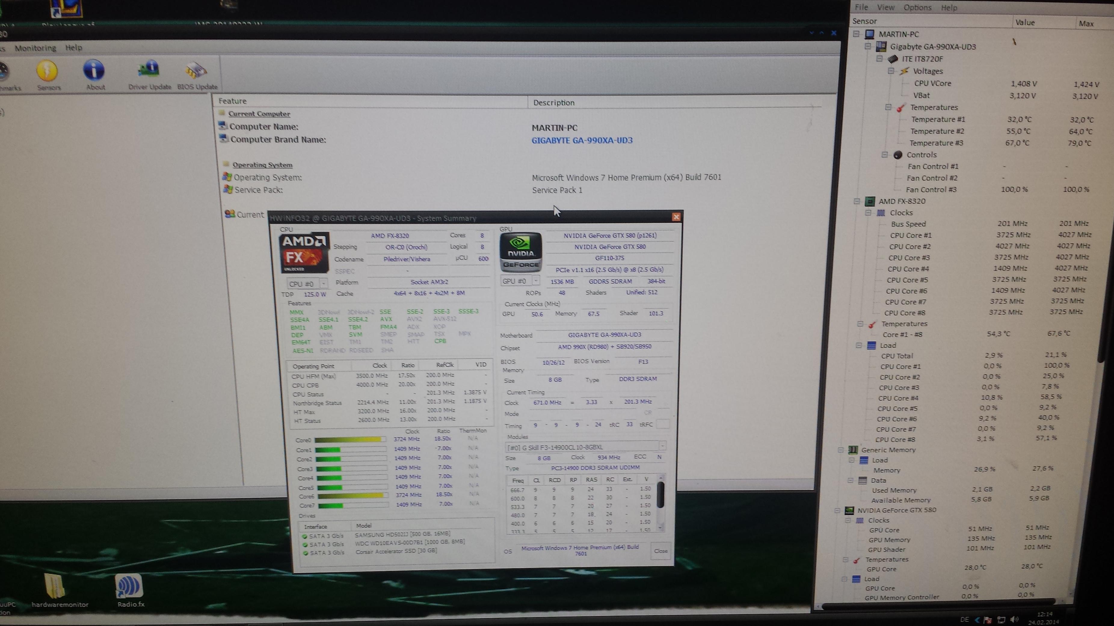 Das Board muss eine Menge liefern, 2 GTX 580 = 150 Watt über den PCIe Slot plus die CPU. kein Plan ob die im OC läuft, klar wird das heiss. Ein Topblower für das Board ist hier schon ein must have.