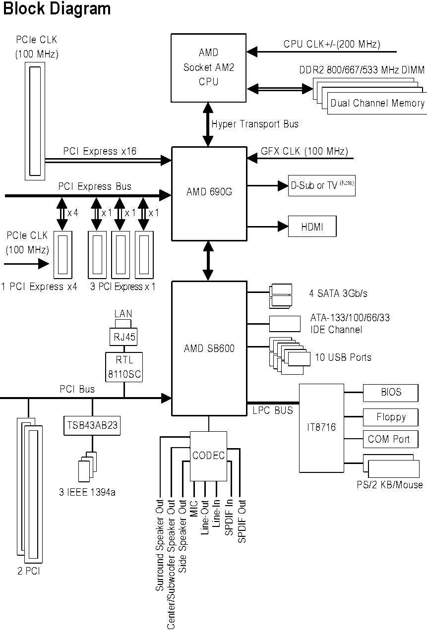 Angehängt das Mainboard-Blockdiagramm aus dem GA-MA69G-S3H - Handbuch.