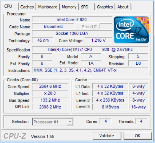 Die Taktung des RAM und der CPU musste manuell auf 1600 MHz bzw. 2,66 GHz eigestellt werden, da ja sonst nur mit 1066 MHz vom Mainboard aus getaktet wird.