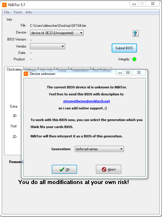Die Gigabyte GTX460OC wird übrigens im aktuellen Nibitor nicht! erkannt, im Auswahlmenü fehlt die 460er Reihe komplett.