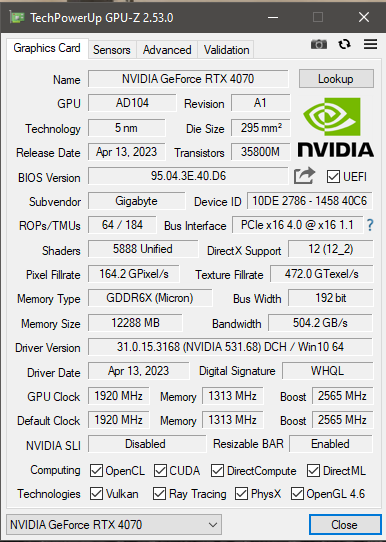 Gigabyte GeForce RTX™ 4070 GAMING OC 12G