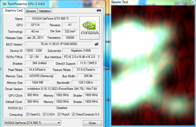 GPU Z hat im Rendertest auch Artefakte. Komischerweiße im Fullscreen Modus nicht.