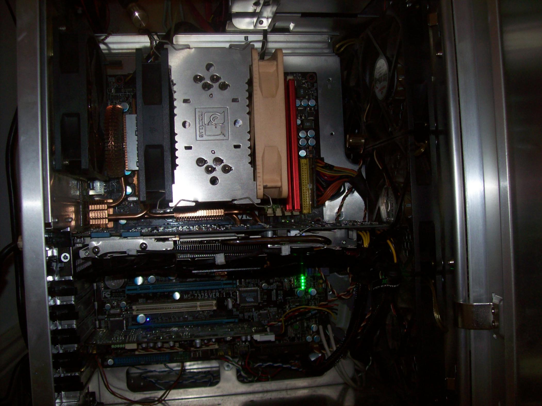 Tut mir leid aber seh dir meine Anordnung mal an, beachte auch meinen höheren Takt und wie gesagt Kühler als in deinem Falle - Netzteil ist bei mir auf der gegenüberliegenden seite ganz unten - Kühlt sich quasi selbst ist ganz alleine mit 1x 80mm Fan für Frischluft ausgestattet.
