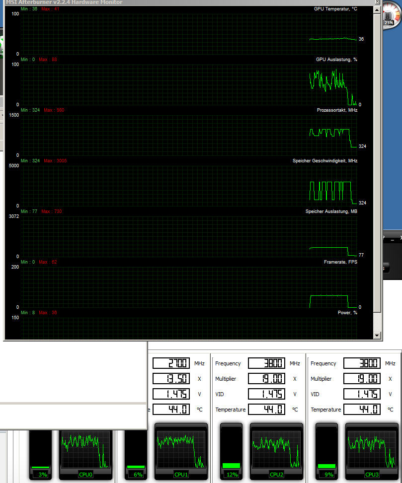Mein 955er bremst schon meine 470er SOC "fast" allein bei GW2 rattern alle Kerne auf volle 100% und die Grafikkarte stellenweise nur bei 50-60% und ist auch nur 66°c warm ( und das ist im Betrieb wo extrem viel abgeht - für einen Thermi ist das "kalt" ) dabei ist alles auf volle Möhre was GPU Leistung benötigt.