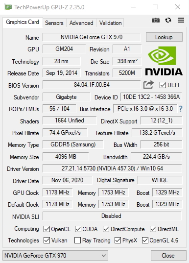 seit ca. 14 Tagen bin ich stolzer Besitzer einer Gigabyte GTX970 (gebraucht, eBay-Kleinanzeigen, wirklich günstig, ich kenne die Testberichte), nachdem sich meine ehrwürdige GTX770 mit Speicher/Chipfehler nach sechsjährigem Dienst in die ewigen Jagdgründe verabschiedet hatte.