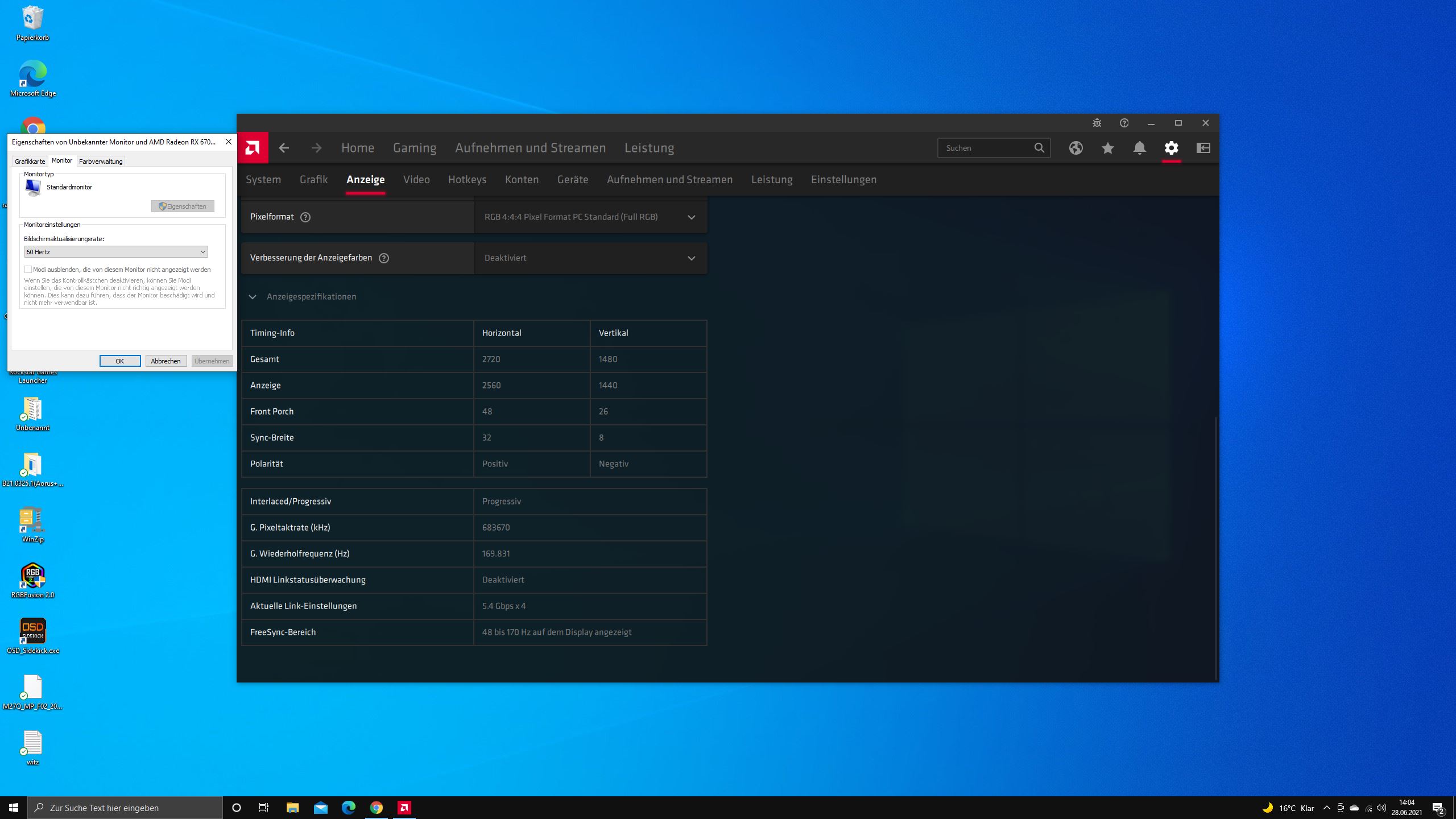 Wie hast du denn genau überprüft, ob er wirklich nur 60Hz ausgibt? Womöglich wird die Windows-Einstellung durch einen Treiber überschrieben o.ä. Im Treiber selbst scheinen ja 170 angegeben zu sein?! AMD Adrenalin-Treiber neu installieren (mit Einstellungsreset) kann ggf. auch helfen, vielleicht hängt ja irgendwas quer.