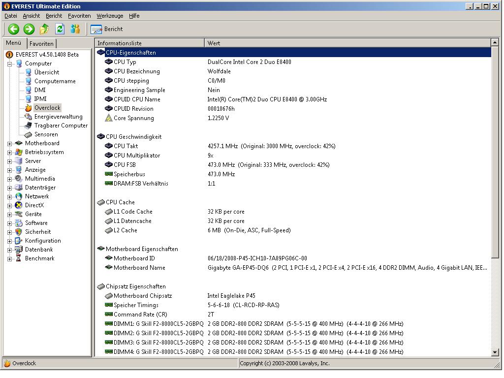 RAM: 4 GB DDR2-SDRAM mit 800-1066 MHZ (2x 2048MB)