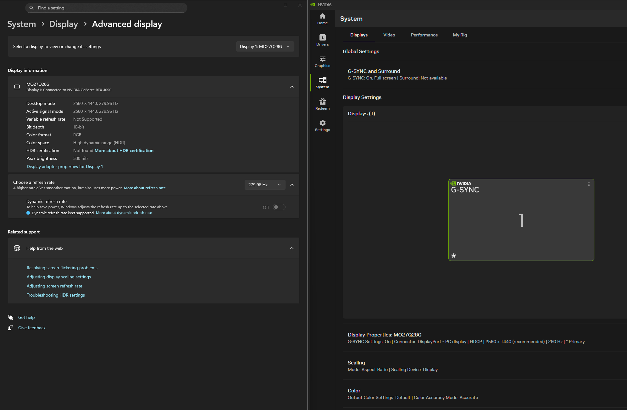 Ich habe seit Kurzem einen MO27Q28G im Einsatz und ihn mit dem mitgelieferten DisplayPort-Kabel an meine RTX 4090 angeschlossen. Soweit läuft alles problemlos. G-Sync ist in der Nvidia App aktiv und ich sehe keinerlei Tearing.