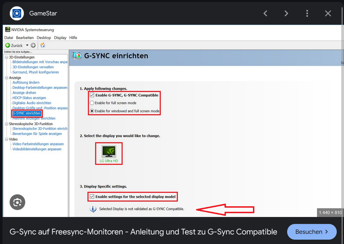 Diese Meldung unten is nur ne absicherung für Nvidia das wenn man Gsync Compatible an bisher von Nvidia