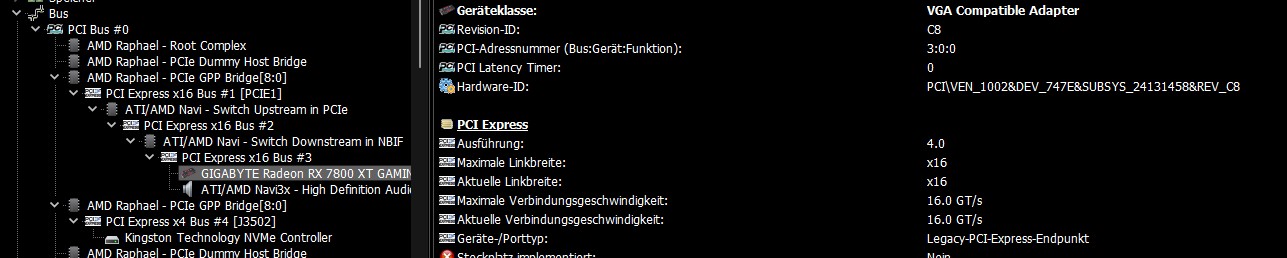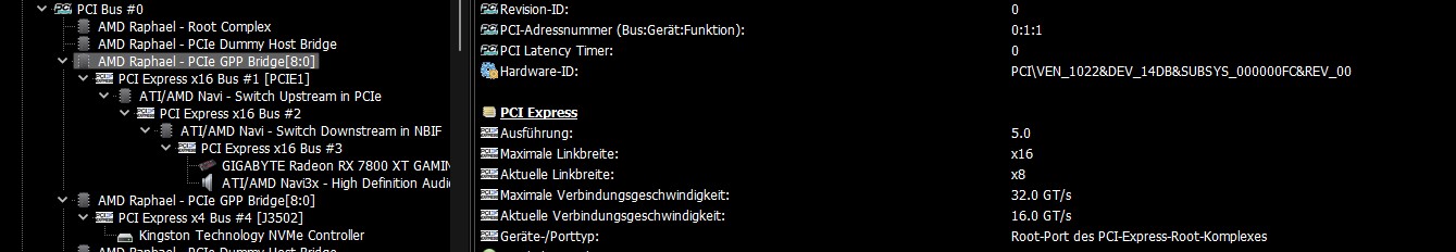Schaue ich in HWiNfo und folge dort dem Pfad vom Bus, zeigt er mir eine x16 Anbindung an. (siehe Anhang)