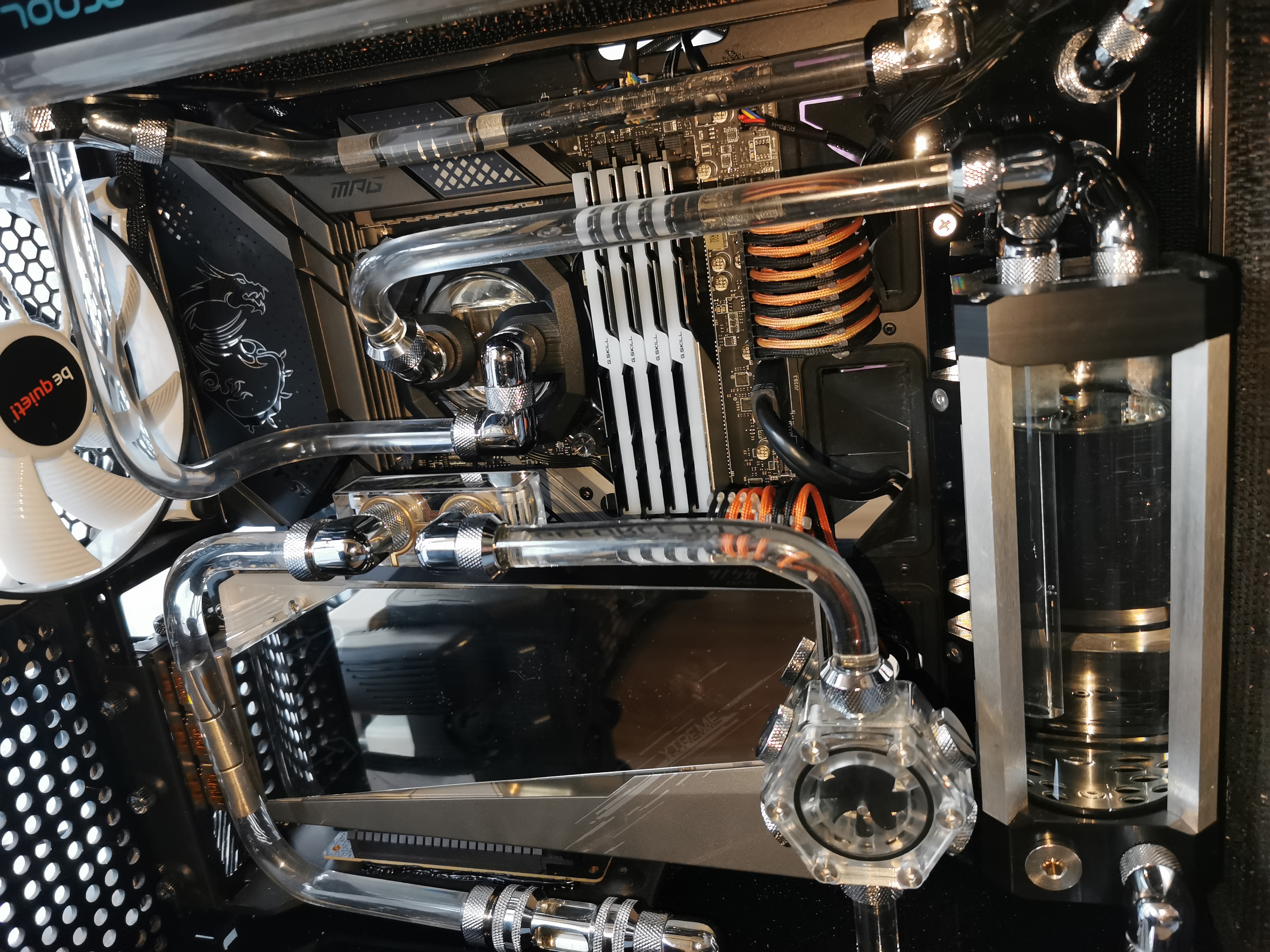 -Grafikkarte: Die Pumpe ist im Idle leise, definitiv kein Krawallmacher. Unter Last bei Time Spy hörbar (Stock, also 450Watt+), aber immer noch sehr erträglich. Bin mir sicher das mit Undervolting + gedrosselt auf 350Watt die Pumpe um einiges leiser ist. Ich werde die Karte auf jeden Fall behalten, auch wenn ich gerade mal zwei Benchmarks gemacht und nur ein bisschen Grim Dawn gespielt habe.