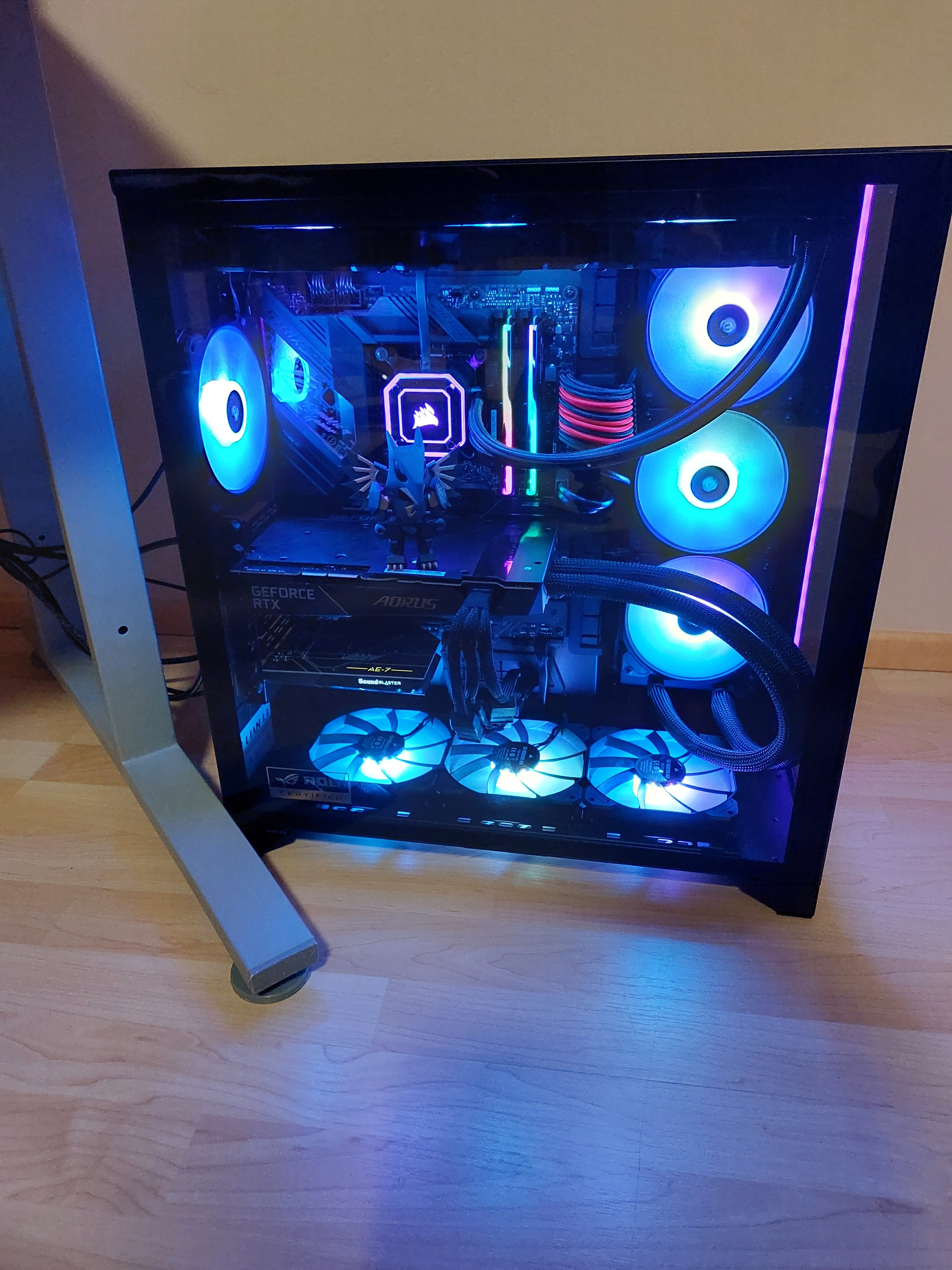 - CPU: Verbaut ist noch eine AiO für die CPU, es handelt sich um die H150i Elite Capellix. Die Pumpe ist im auslieferzustand extrem Laut, egal welches Profil man wählt. Wenn man weiß wie kann man aber die Drehzahl auf etwa 1950-2000RPM reduzieren, die Pumpe ist dann quasi unhörbar. Wie gerade mal 300RPM (zum Profil "Leise" in iCUE) weniger so eine riesigen Unterschied machen können ist mir schleierhaft und gleichzeitig auch egal, Hauptsache es ist jetzt flüsterleise.