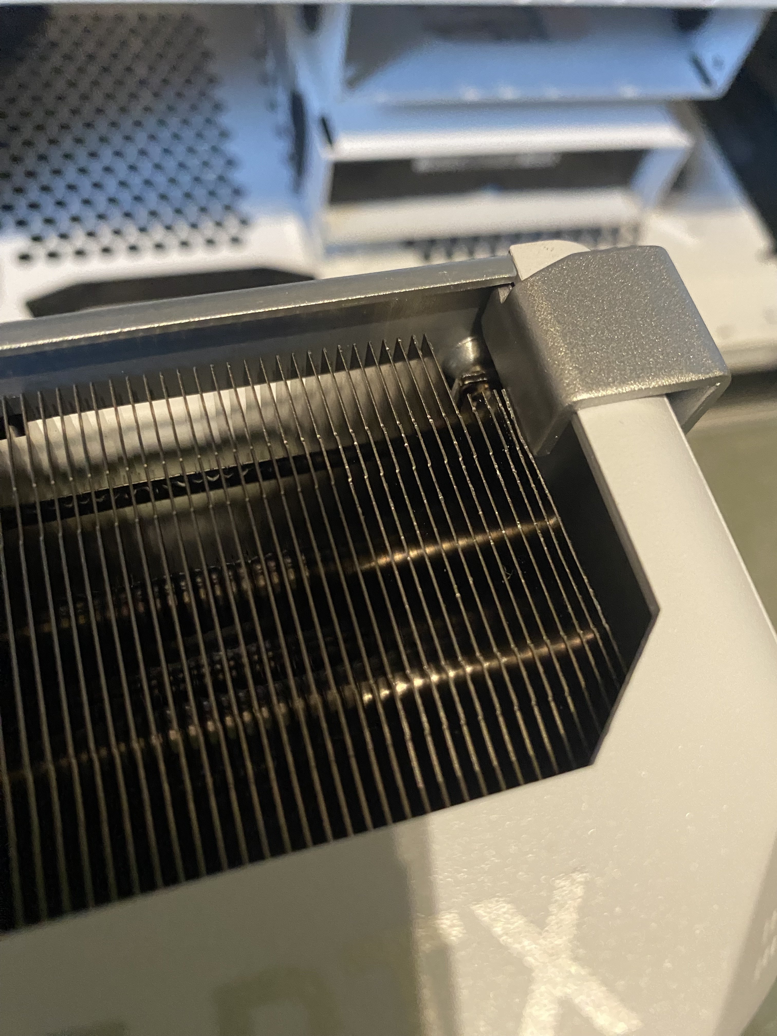 Das Problem ist das der mitgelieferte Halter der hinten eingehackt wird die Lamellen am Kühler verbiegen. Für so eine teure Grafikkarte ist das echt bitter. Ich dachte ich habe etwas falsch gemacht. Hat jemand die selbe Karte und kann mir sagen ob das so normal ist?