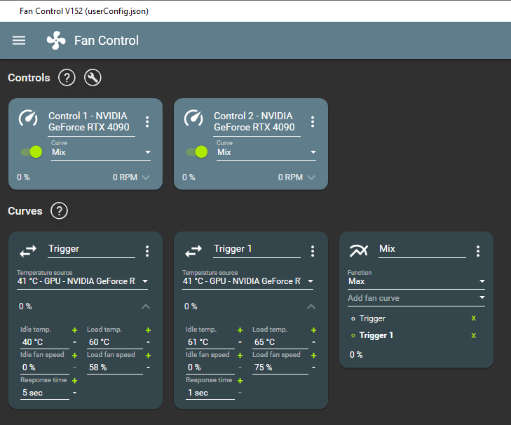 Ich würde mich über Kommentare zu den Einstellungen freuen. Ich habe fast das Gefühl, dass die Spannung auf den LEDs an die Lüfterspannung gekoppelt ist und die LEDs bei Stillstand daher nicht leuchten. Was schon sehr peinlich wäre. Ich hoffe allerdings, dass ich einfach irgendwas übersehen habe.