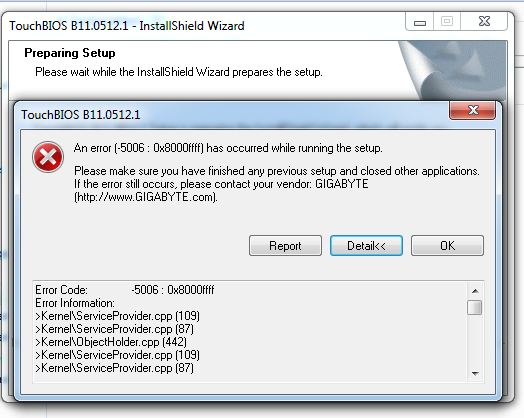 Wenn ich versuche das Programm "Touch Bios" von Gigabyte zu installieren, kommt eine Fehlermeldung, mit der ich nicht wirklich was anfangen kann. Ich habe schon gelesen, dass das irgendwas mit einem Dienst zu tun hat welcher noch geöffnet ist. Ich kriege diese Fehlermeldung bei jeglichen Gigabyte Programmen, welche mit dem Chipsatz zusammenhängen, also sozusagen direkt aufs Mainboard zugreifen können.