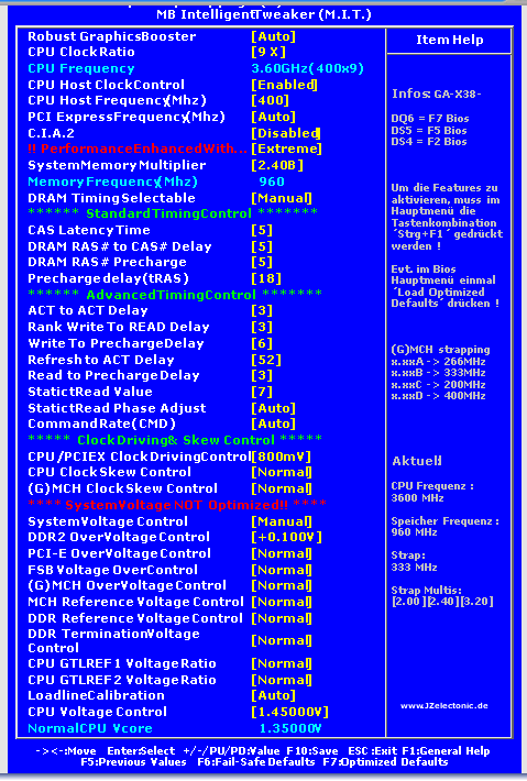 Ich erlaube dem Mobo nicht neue Einstellungen zu bestätigen ohne dass ich weiss was für Werte gelten. Im schlimmsten Fall wählt es zu hohe Spannungen und verbrät mir CPU, Speicher,Northbridge usw. Ich will auch nicht das der PCIE-PCI und Memory Takt steigt. Mein Ram läuft bereits auf 1066.