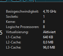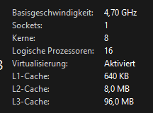 zwei mal neu gestartet ins bios und gecheckt ob x3d turbo modus auf disabelt steht wieder in den taskmanager gekuckt und es bleibt bei 8 logischen kernen