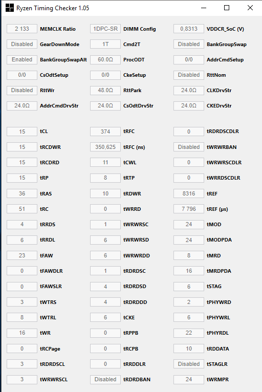 Danke schon mal, mache ich wenn ich wieder zu Hause bin heute Abend! Hatte im Gigabyte Forum schon quer gelesen, dass man mit dem tRC Wert gute Erfolge erzielen könnte.cm87 schrieb:@SFFox Lies mal mit Ryzen Timing Checker deine Einstellungen aus und Poster hier mal einen Screenshot.
