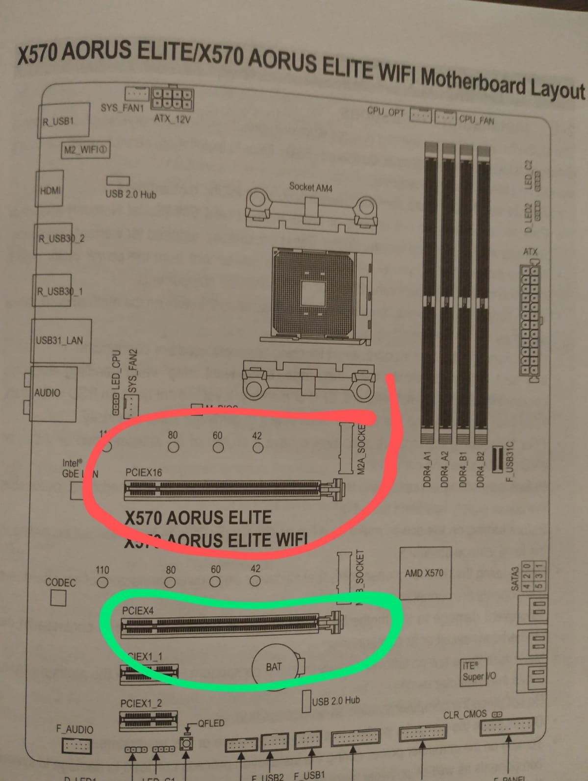 Meine Frage ist, kann ich die Grafikkarte von dem PCIex16-Slot (roter Kreis) in den PCIex4-Slot (grüner Kreis) stecken?
