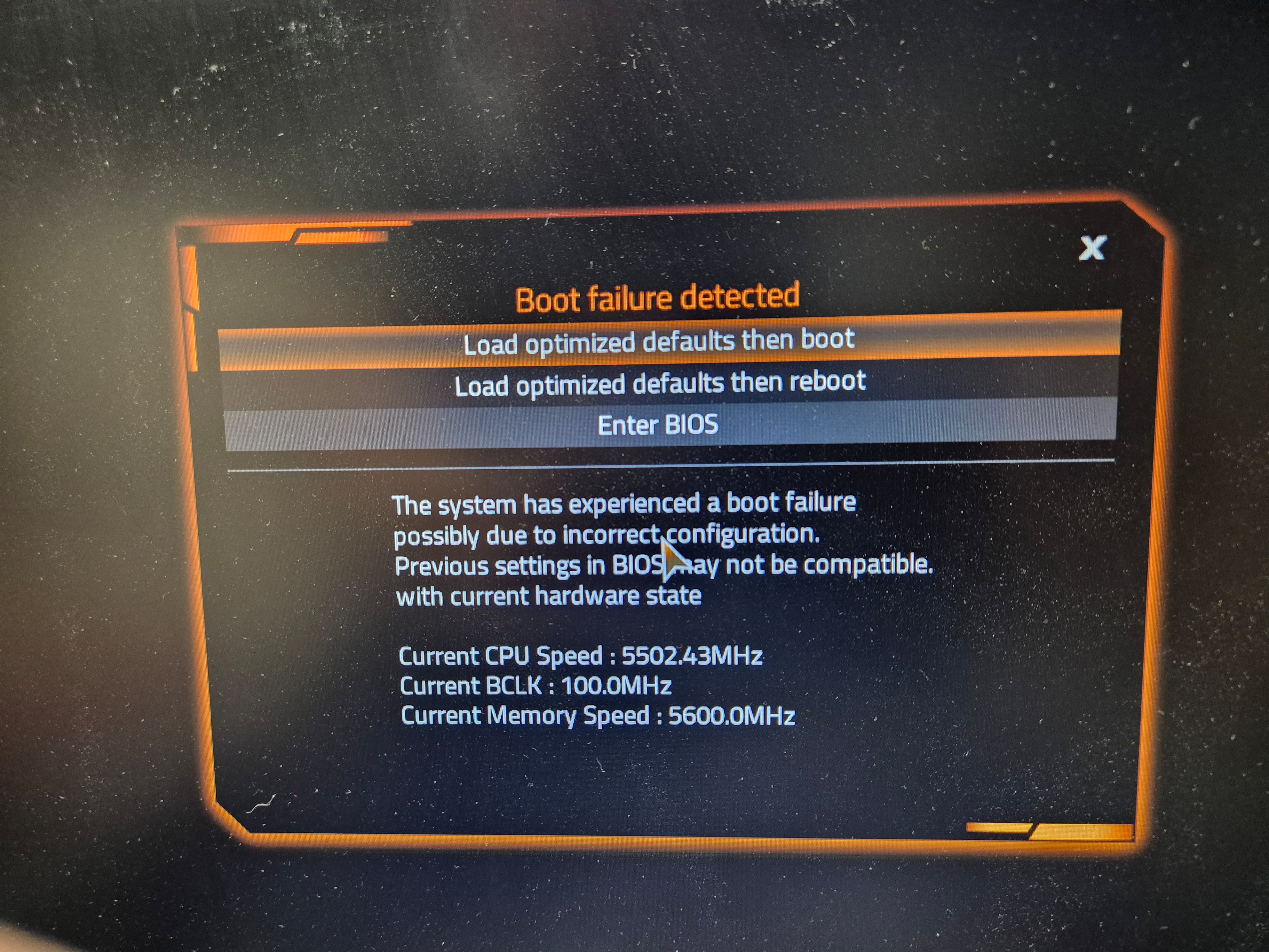 ...Also, erst einmal guten Tag. Ich bin Neuling, was die Nutzung von Foren angeht. Wenn ich irgendwelche Fehler mache, dann bitte einfach darauf hinweisen. Zu meinem Problem. Ich muss mir einen neuen Computer für die Arbeit zusammenbauen. Dazu habe ich die oben beschriebene Hardware gewählt. Laut meinen Recherchen passt das auch alles so weit zusammen. Nun habe ich das Problem, dass er beim ersten Start mir sagte, dass er ein Bootproblem hat, weil die Voreinstellungen im Bios nicht mit der vorhanden Hardware zusammenpassen (siehe Bild 1) . Wenn ich jetzt die vorgegebenen optimierten Einstellungen lade dann fährt das System hoch, ich kann installieren - alles prima. Fahre ich herunter, entferne ich den Netzstecker, warte eine Weile und starte dann wieder, dann bin ich wieder bei Bild 1. Es gibt im BIOS auch die Möglichkeit die optimierten Einstellungen zu speichern. Aber das hilft auch nicht.