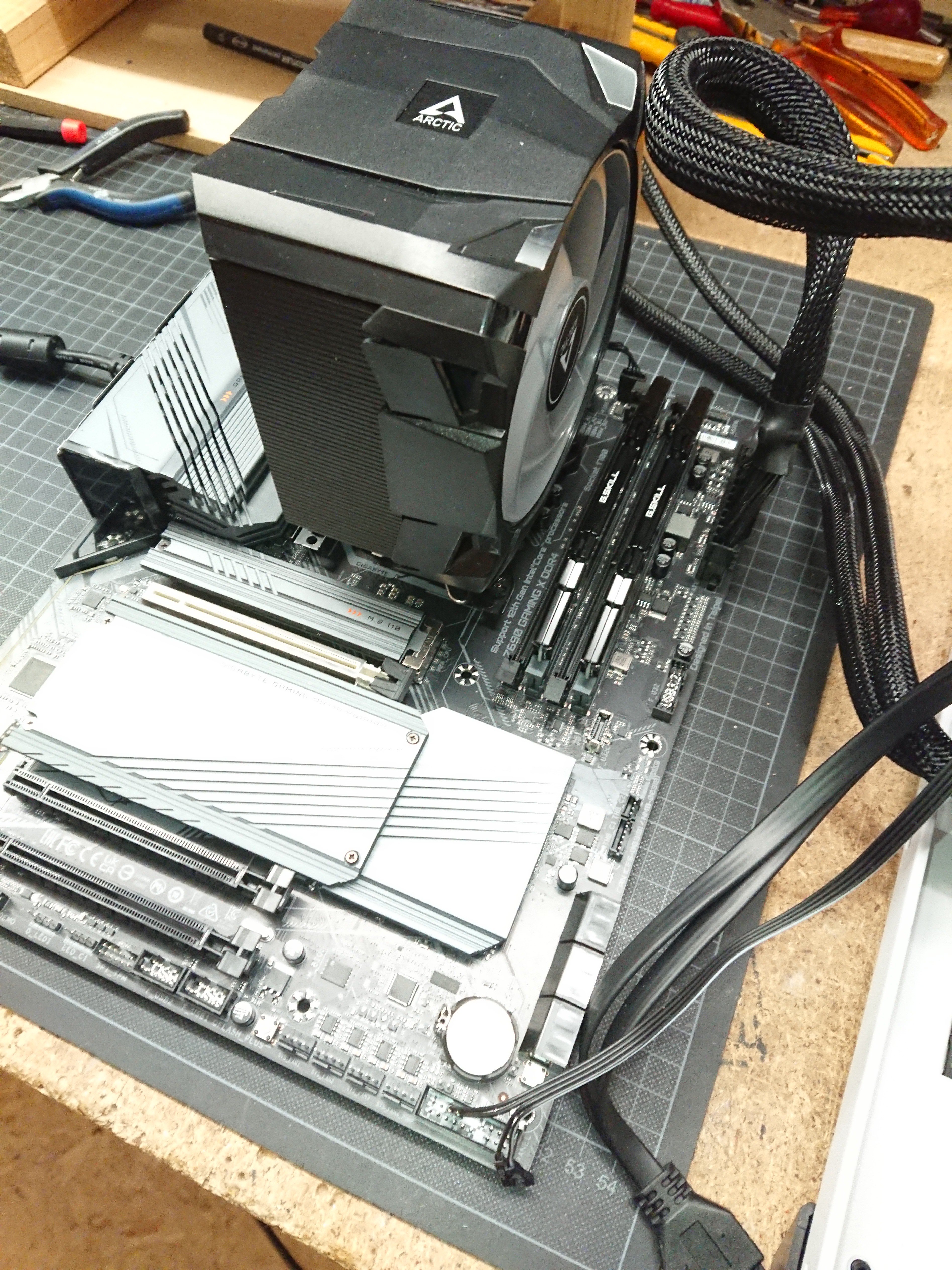 Ich habe die RTX 3070 und die SSDs herausgenommen, nur die Lüfter und der Startknopf sind am MB angeschlossen, kein Erfolg. Leider geht mein Netzgerät Tester nicht, weil ich nicht weiß, wie man das Netzgerät "einschalten" kann. Auch habe ich keine DDR4 RAM Riegel da, um zu testen.