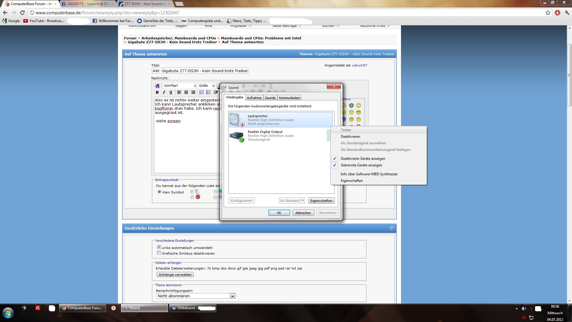 Gigabyte Z77-DS3H - Kein Sound trotz Treiber