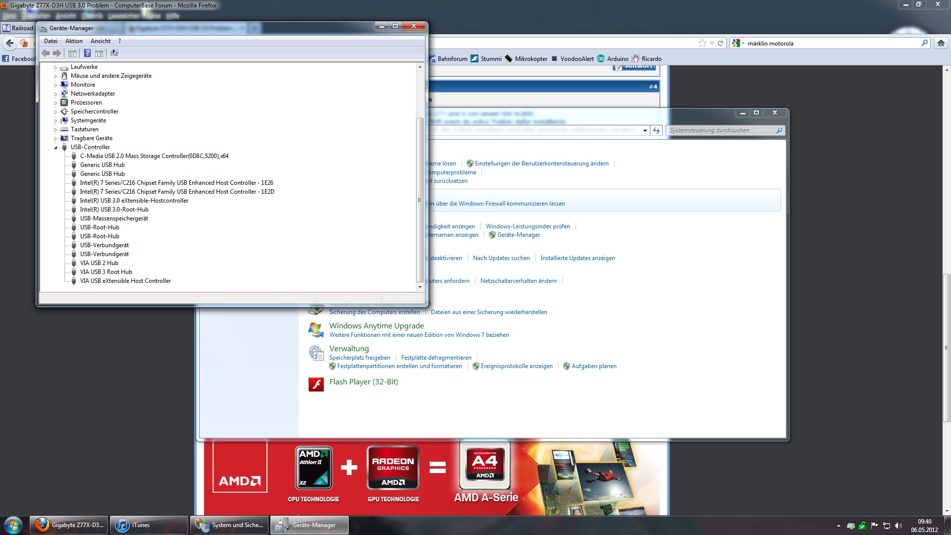 Nach Formatierung der SSD und Neuinstallation von Windows 7 und allen Treibern habe ich bemerkt das meine USB 3.0 Anschlüsse nicht ordentlich funktionieren.