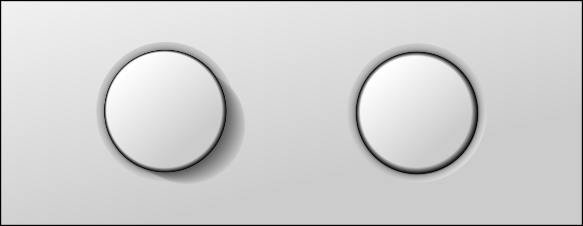 Der Effekt das der Knopf 2 Zustände hat wird vom Betrachter dadurch wahrgenommen, daß sich der Schattenwurf und ein Glanzlicht verändern.