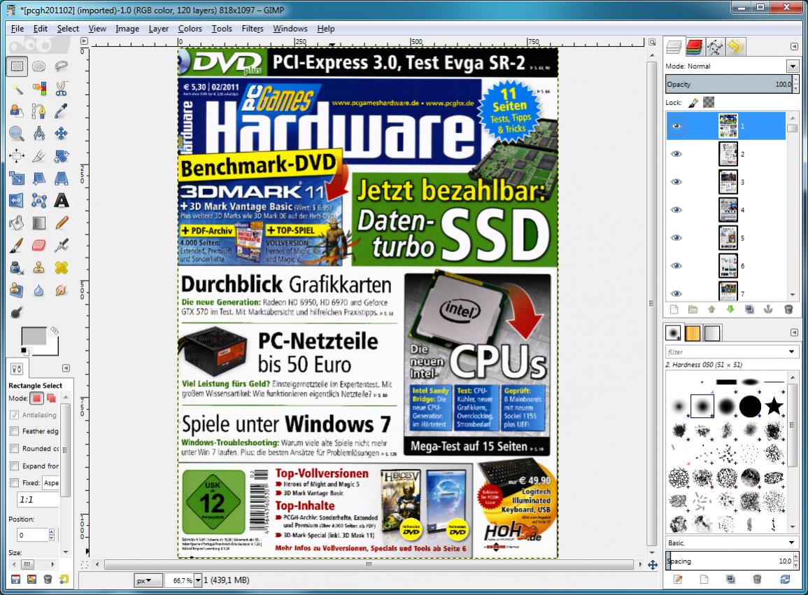 habe folgendes Problem: Ich habe eine 85MB große pdf bzw. ai-Datei die ich gerne mit Gimp aufmachen möchte. Jedoch stürzt das Plugin bei 15000*15000 Pixeln ab, alles unter 15000 kann ich mit Gimp importieren. Meine Frage ist nun, wie ich diese Beschränkung beseitigen kann. 8GB RAM (siehe Signatur für Rechnerkonfig.) sollte doch für sowas ausreichend sein?!