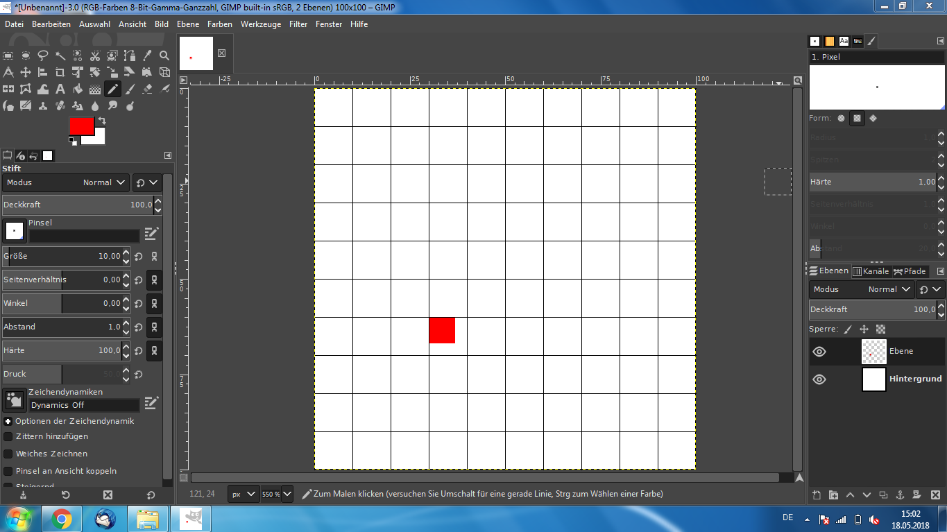 Falls du mal Krita probieren möchtest, dort sieht man automatisch das Pixelgitter in hohen Zoomstufen, gleich wie Photoshop das macht. Pixelart lässt sich viel bequemer in 1 zu 1 Pixelgröße erstellen und am Ende mit Nearest Neighbor Algorithmus auf die gewünschte Auflösung skalieren.