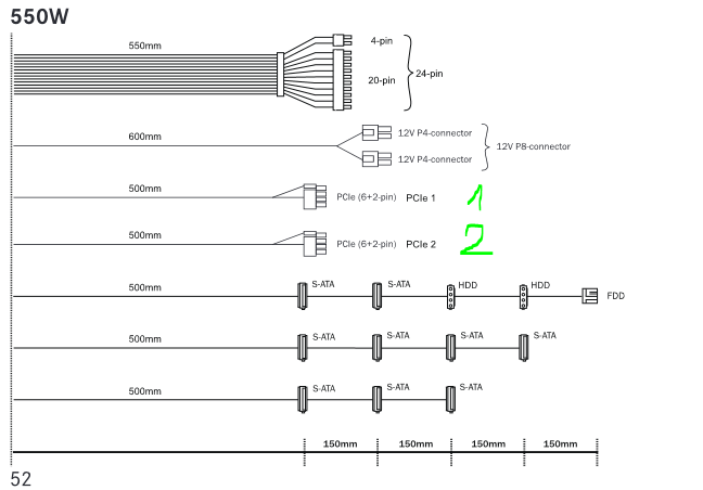 Ich habe eine Super Flow 90+ Gold 550W und da ist nur ein VGA bzw. PCIe Anschluss für die GPU -.-°