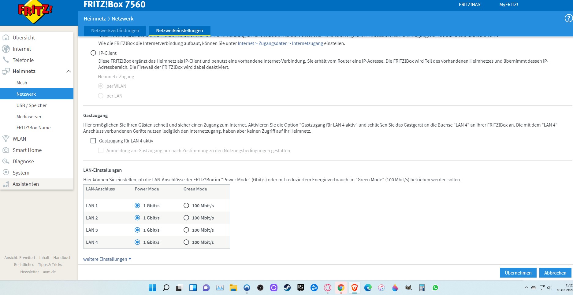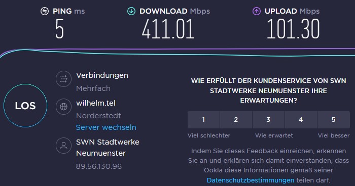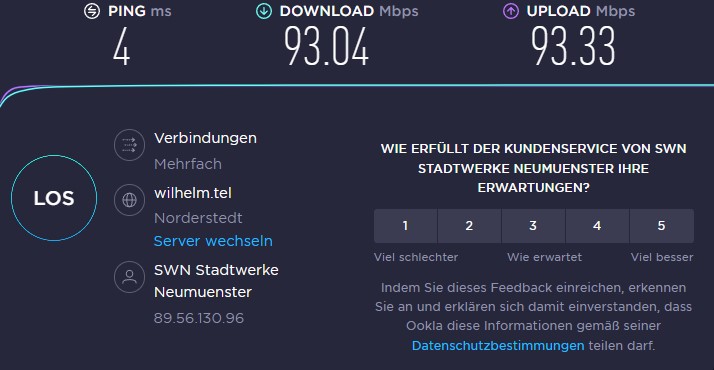 ich habe momentan eine Fritzbox 7560, die laut Interenetrecherche, max. 100mbit unterstützt, das spiegelt das Speedtest Ergebnis auch wieder.