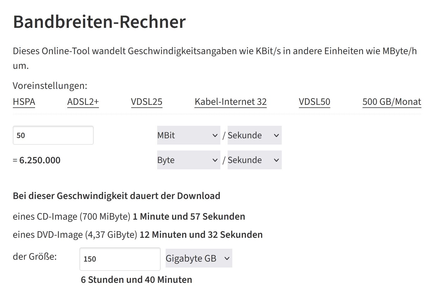 https://www.heise.de/netze/tools/bandbreitenrechner/Sc0ut3r schrieb:150gb mit einer 50mbit leitung sind rund 8,5h stunden, wenn der download nicht absackt