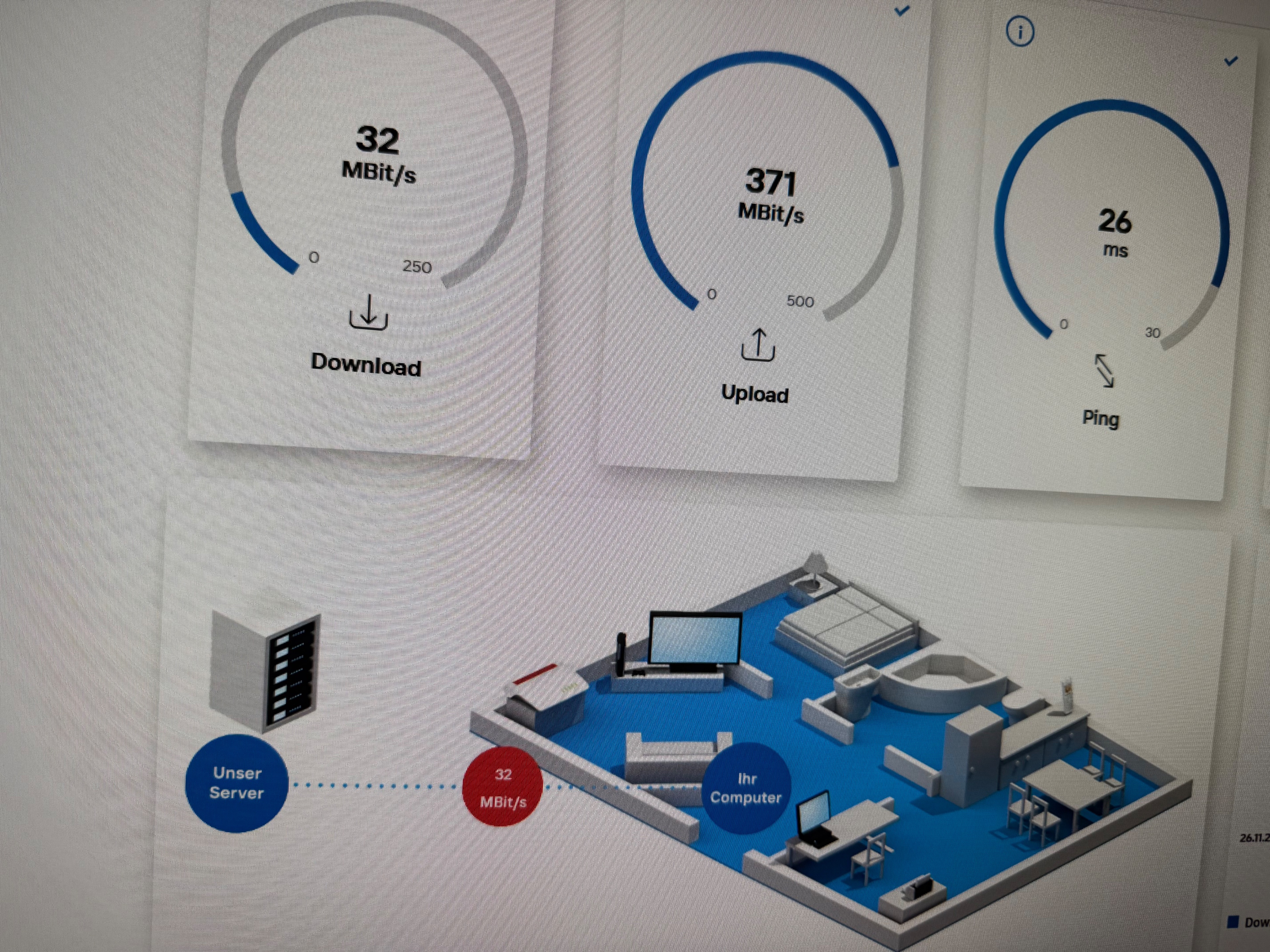Fangen wir erst mal mit der Messung an. Wie hast Du diese Geschwindigkeiten ermittelt? Mit einem "offiziellen" Speedtest z.B. den von der Bundesnetzagentur? Downloads von Websites sind nicht aussagekräftig, zumal die auch mal drosseln können, wenn man große Datenmengen runterlädt.Maria109 schrieb:Was echt kurios ist. Ich habe jetzt schon den ganzen Tag einen Download von 900 und einen Upload von 400. Sobald ich aber anfange mehrere Seiten zu öffnen ,geht dass runter auf 200 oder weniger. Der Upload dann oft sogar nur bei 40. Alles ein Rätsel und keiner weis warum.